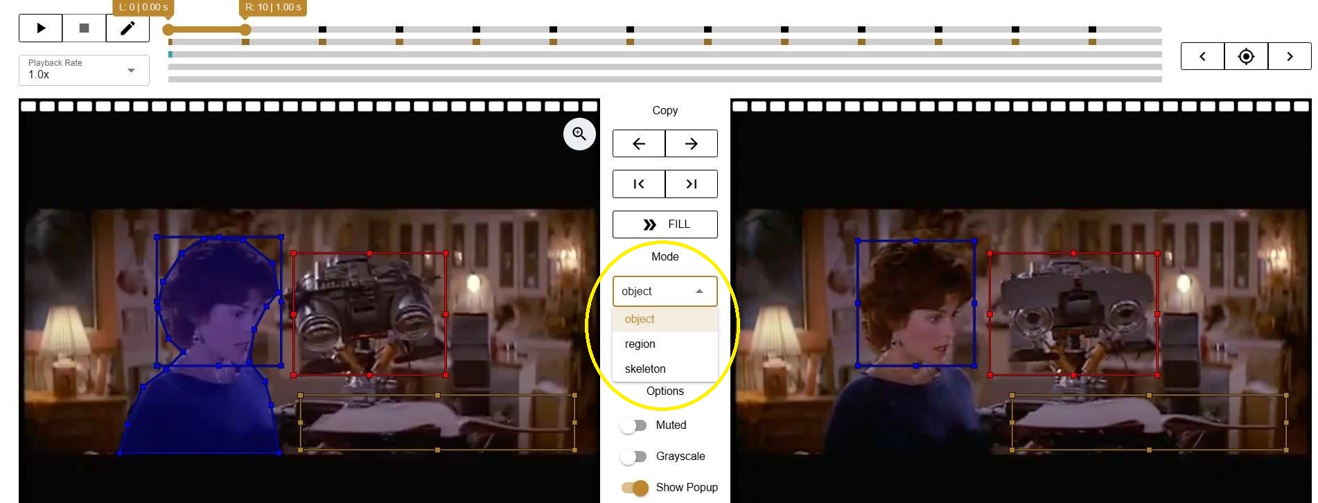 Create detailed annotations by drawing bounding boxes, regions, and skeletons, labeling multiple objects, and tracking them seamlessly across frames. -